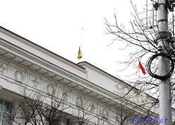 Как сообщает корреспондент сайта ForPost, несколько минут назад со здания городского совета Севастополя спущен государственный флаг Украины. Сейчас над органом представительской власти города развевается лишь флаг Севастополя.