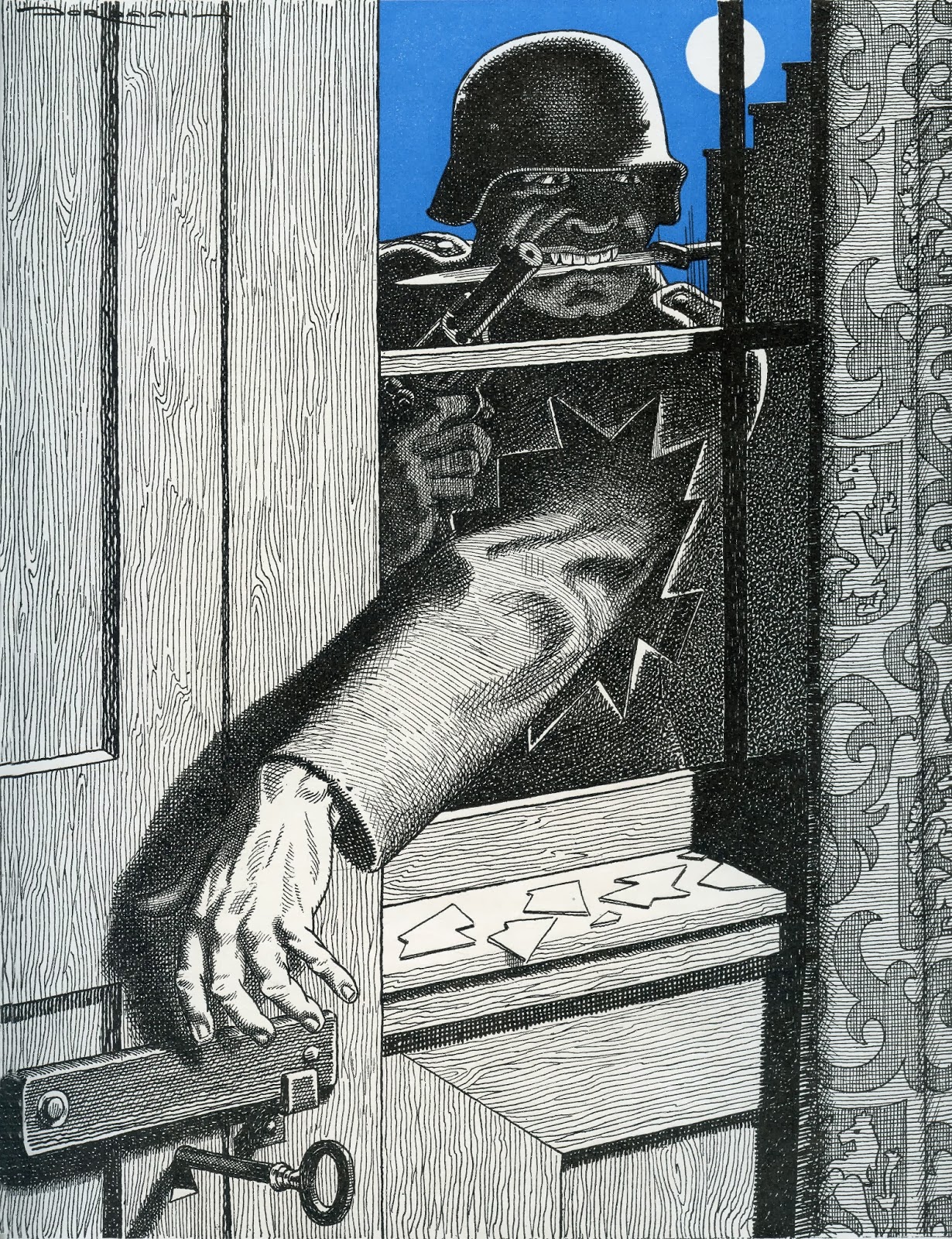 Антифашистские рисунки и карикатуры голландского художника Лео Йордаана, которй в 30-е годы открыто выступал против нацизма, а в период оккупации Голландии, продолжил рисовать из подполья, вплоть до освобождения Голландии.