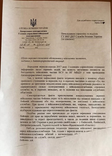 Но вернемся к вооруженным силам Украины, и конкретнее что твориться там: постоянно отмечаются факты задержки выплат в полном объёме денежного довольствия, что приводит к увеличению недовольства среди военнослужащих рядового и сержантского состава) и, в отдельных случаях, к их отказу от исполнения служебных обязанностей, что ведет за собой мародерство, разбой, пьянку и продажу оружия мирным жителям. Наблюдаются факты сокрытия командованием отдельных военных частей боевых потерь и их маскирование под несчастные случаи в небоевой обстановке или под заболевания, не связанные с военной службой. Получила распространение тенденция снижения военной дисциплины среди военнослужащих – убийство солдат из огнестрельного оружия друзьями по службе, многочисленные самоубийства.
