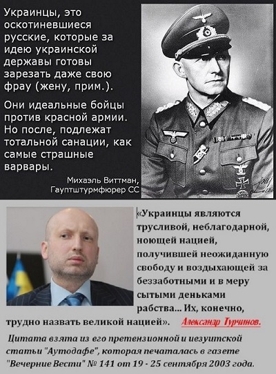 А дальше то что? Ну пришли люди на выборы, выбрали "чистый лист", отказав в доверии существующей хунте и дальше то ... что? Все основные общественные институты: школа, наука, государственность и семья у западенцев пронизаны ядом русофобии. Его ещё больше у восточных неофитов напившихся крови своих бывших собратьев. Не надо также забывать и про желание изрядной доли населения разположить свою хатку с краю ото всех исторических бурь где-нибудь в глуши водочных рек и компьютерных берегов. И не надо думать, что имея оружие на руках и всемерную (информационную, организационную, военную и т.п.) поддержку наших ляпших западных партнёров, эти слои населения без боя сдадут захваченные позиции в государственном управлении, науке, школе, бытовой русофобии. Что в такой ситуации делать России?