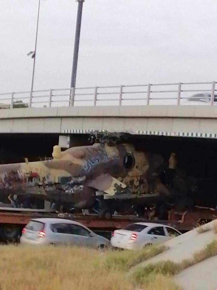 В Ливии боевики ПНС аки питерские маршрутчики уперлись в мост при перевозки трофейный вертолет Ми-35 захваченный у Хафтара.
