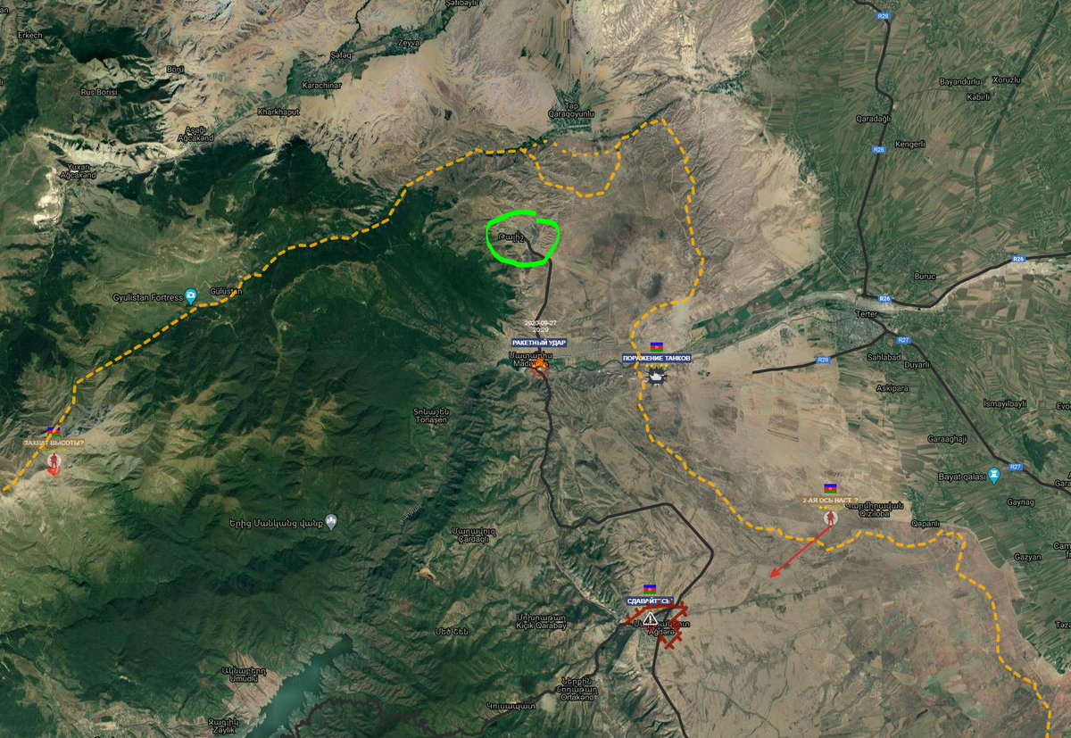 Также заявляется об окружении арямнского гарнизона в Агдере, которому предложено капитулировать. Армянские источники опровергают сообщения об азербайджанских успехах и заявляют о больших потерях азербайджанской армии, выкладывая новые видео с уничтоженной техникой. Азербайджан пока что в основном хвастается видео с работой турецких БПЛА. Видео с привязкой к местности, которые бы верифицировали декларируемые успехи, пока что нет.