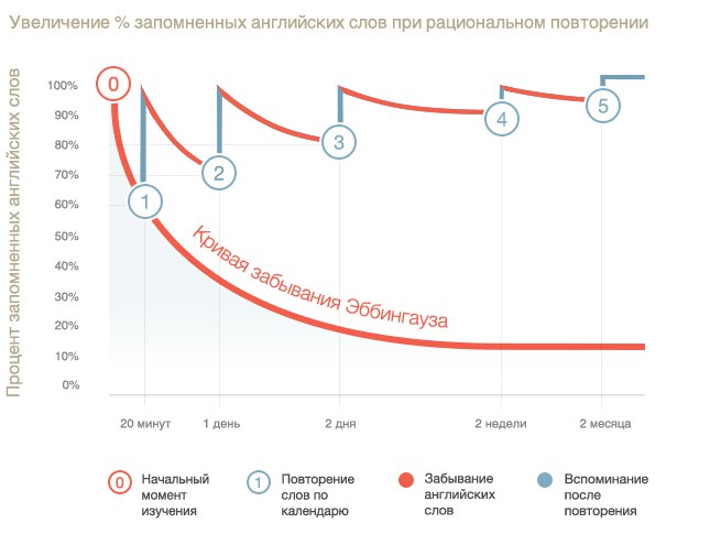 По-моему, авторы оседлали кривую Эббингауза. Вот как раз пример с 10% информации, оставшимися в памяти через 2 недели: https://myenglishclassroom.com/images/site/system.png.