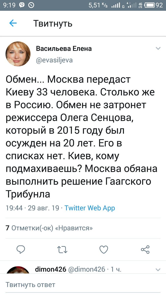4. Небезызвестная Елена Васильева утверждает, что обменяют 33 на 33, но без Сенцова.