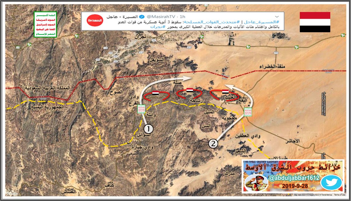Наибольшая активность по-прежнему у границ с Саудовской Аравией, где по заявлениям хуситов за последние дни саудиты потеряли несколько сотен человек убитыми, ранеными и пленными (хуситы заявляют, что нанесли поражение 3-м саудовским бригадам, которые были окружены в Наджране), а также десятки единиц техники. В течение суток обещают представить новые видео очередного погрома саудитов, которые вряд ли чем-то новым удивят - хроническая импотенция саудовской армии уже давно секретом не является, сколько денег в нее не вкладывай. Видео с пленными тут https://twitter.com/nm79797979/statu...13866577543170 (на видео их десятки), видео захваченной техники тут https://twitter.com/nm79797979/statu...13767852015617, трофеи и пленные тут https://twitter.com/thoulfikar3ali/s...63947833593857