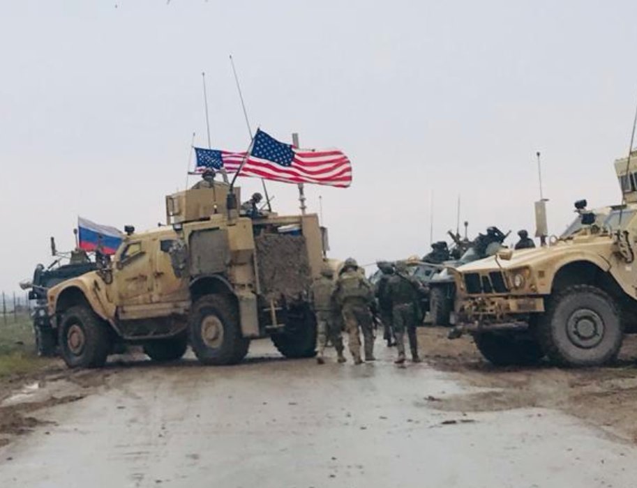 Американцы пытаются блокировать проезд российского патруля в северо-восточной Сирии.