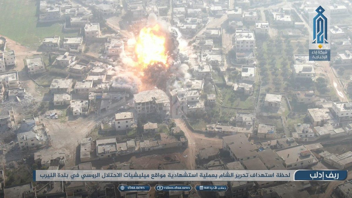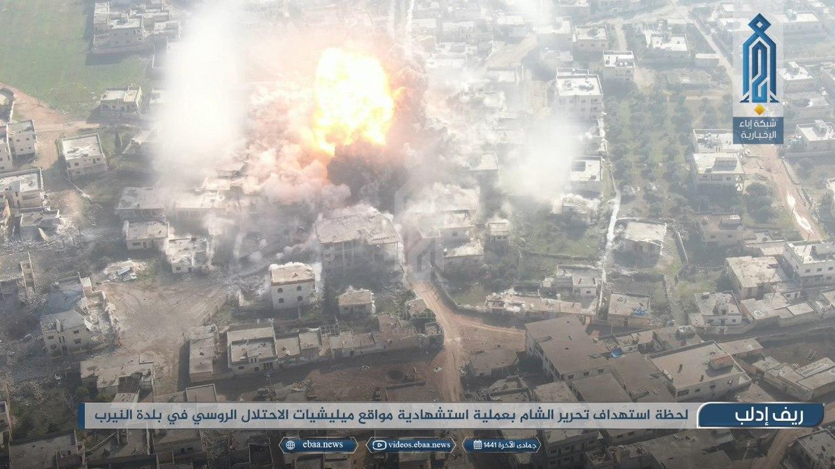 Ниже, взрыв шахид-мобиля в Найрабе. Судя по кадрам,сирийскому танку кранты.