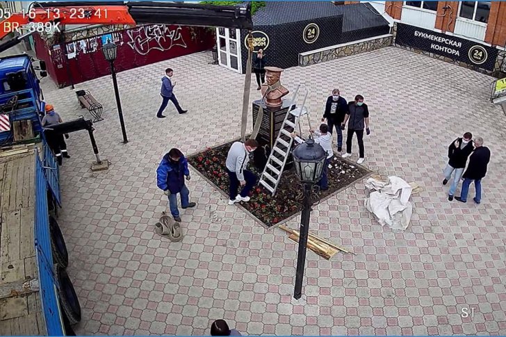 По его словам, представители городской администрации приехали к памятнику, опечатали его, убрали венки. После этого подъехал экскаватор, сейчас бюст пытаются демонтировать. Чиновники заявили, что он установлен незаконно.