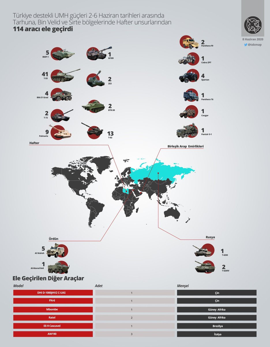 Плюс трофеи Турции и ПНС Ливии захваченные у Хафтара с 2 по 6 июня. Всего заявлено 114 единиц техники (часть из трофеев в неработоспособном состоянии).