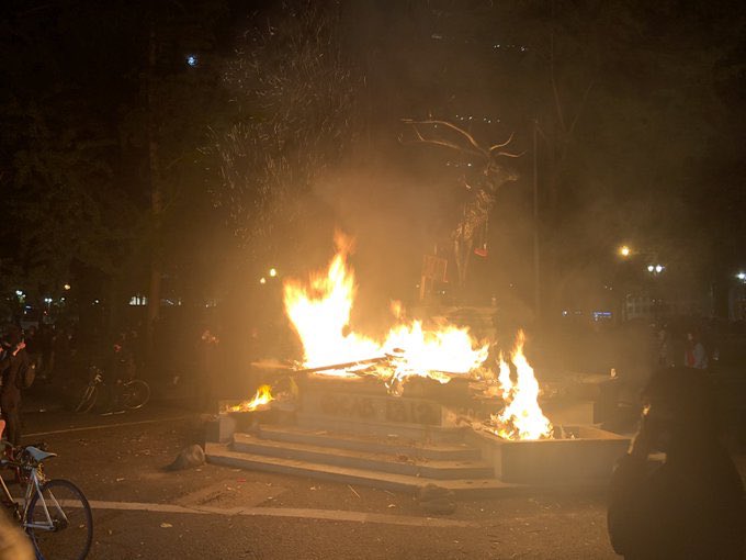 Оппоненты активистов BLM утверждают https://pjmedia.com/news-and-politic...recip=23180774, что это предупреждение всем жителям Портленда "Если они такое могут сделать со случайным лосем, представьте, что они могут сделать с вами". Там же не менее чудесно сравнивают вандалов с офицерами НКВД которые выполняют план по наполнению ГУЛАГа и цитируют Солженицына. Тот случай, когда прекрасны обе стороны, но жалко только лося, хотя как знать, не продвигал ли он в тайне идеи какого-нибудь превосходства.