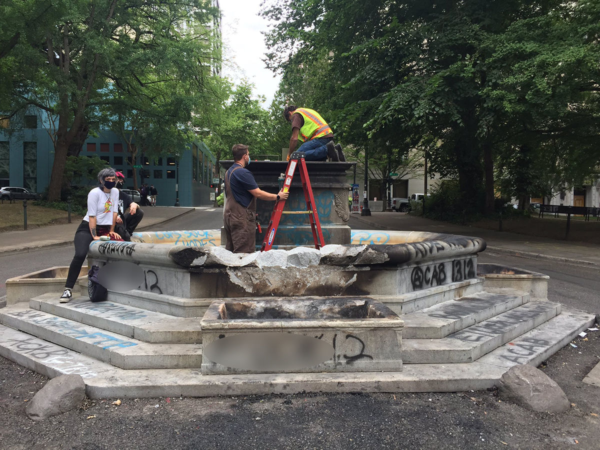 В Портленде 2 июля снесли статую лося, поставленную в 1900-м году в память о животных, населявших леса на месте которых появился Портленд.