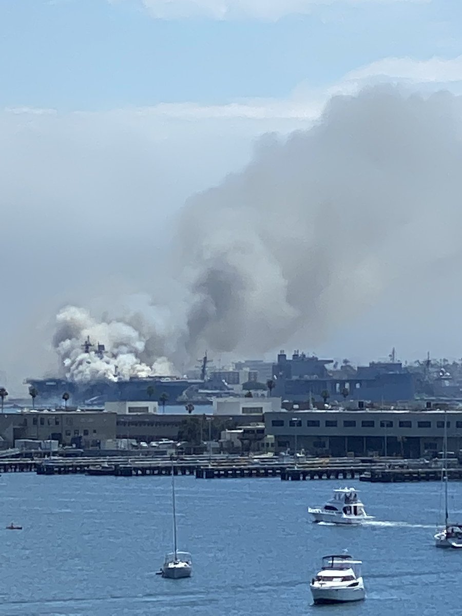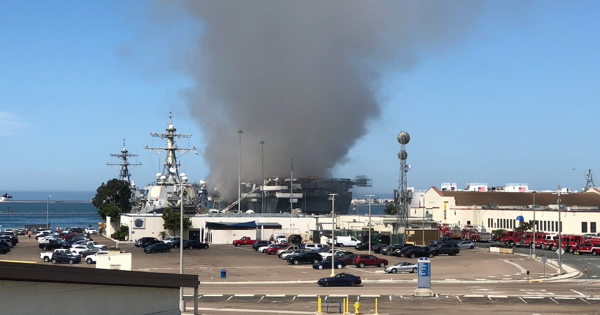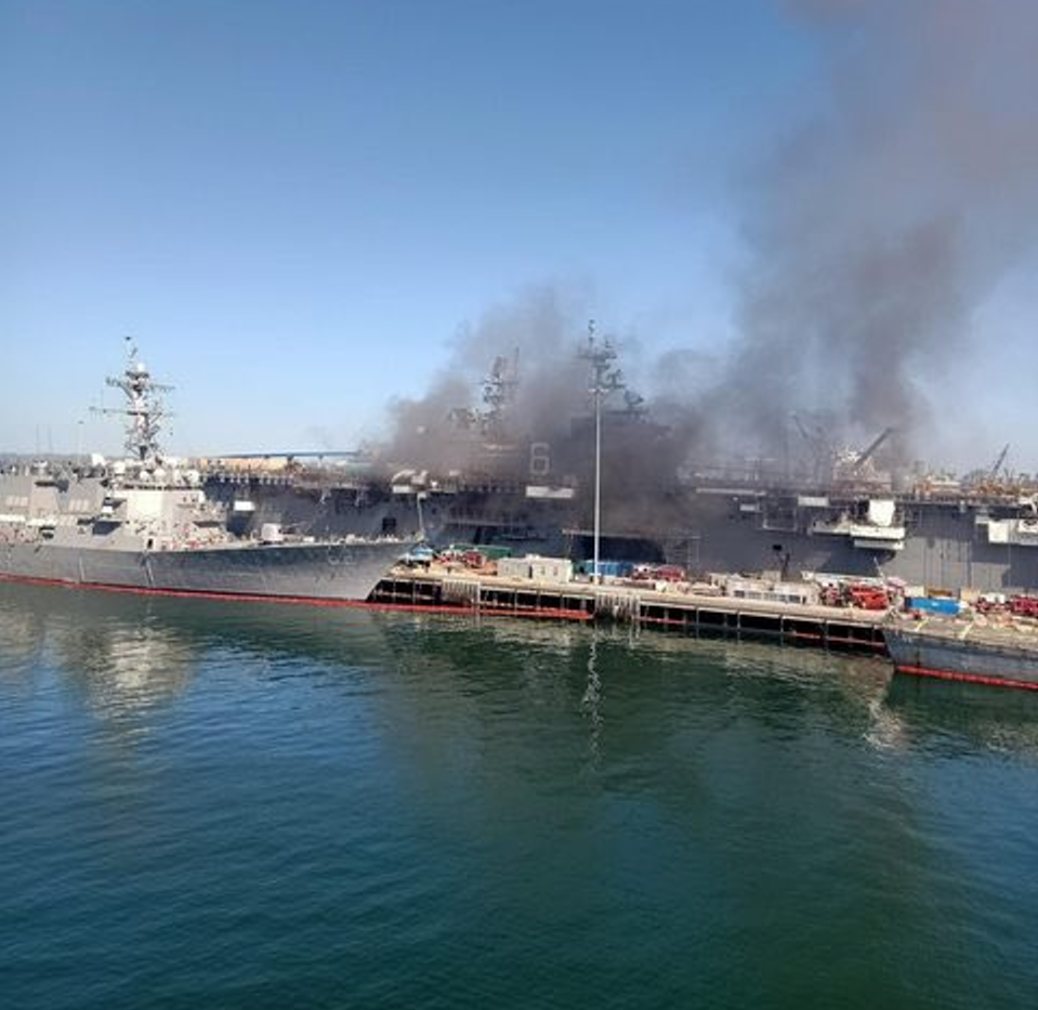 В гавани Сан-Диего горит УДК "Боном Ричард". Сообщают о взрывах внутри корабля и раненых моряках.