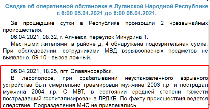С нашей стороны сообщается о погибшем подростке. Подорвался на мине в районе Славяносербска.