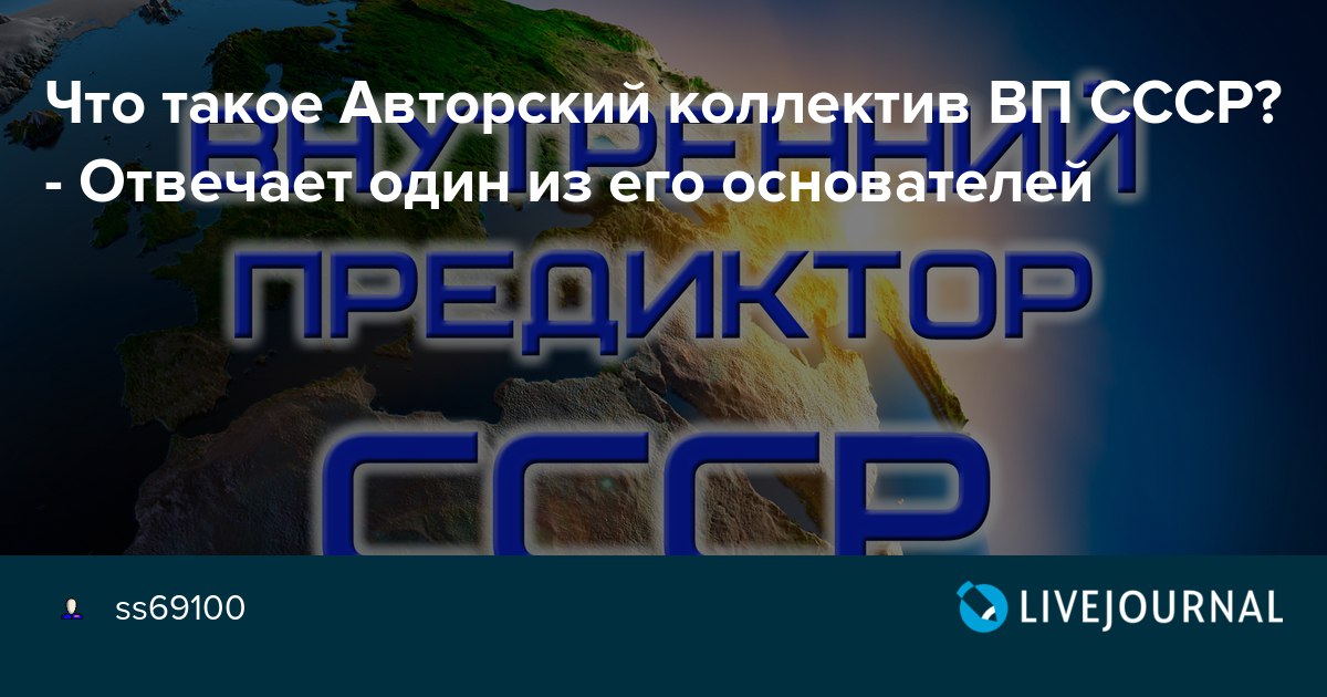 Livejournal</br>Что такое Авторский коллектив ВП СССР? - Отвечает один из его основателей</br>Получил следующее сообщение с разрешением на его публикацию. * Серёжа, здравствуй! 1. Внутренние дела ВП это внутренние дела ВП. Что происходит и как происходит, на публику, не участвующую в процессе, не выносится. Матричная безопасность этого требует. Но без взаимосвязей с обществом не…</br>