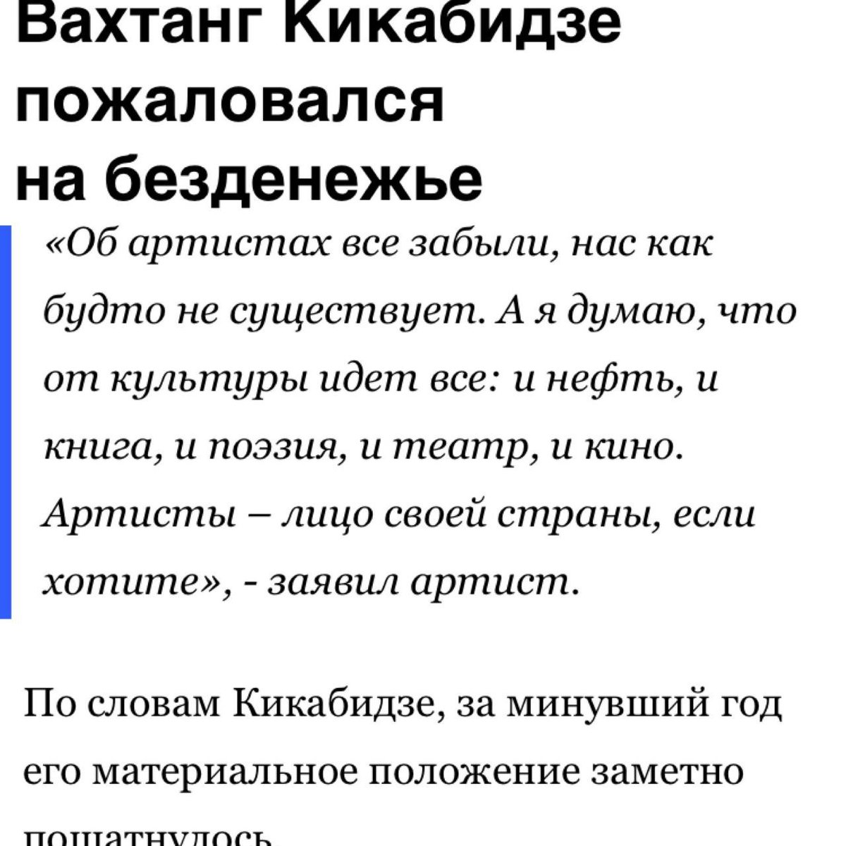 В самой же Грузии за такие деньги Кикабидзе особо и не нужен. Остается плакаться в СМИ, что его такого замечательного не ценят. Что не удивительно, так и свой собственный народ Кикабидзе считает швалью https://colonelcassad.livejournal.com/1153832.html