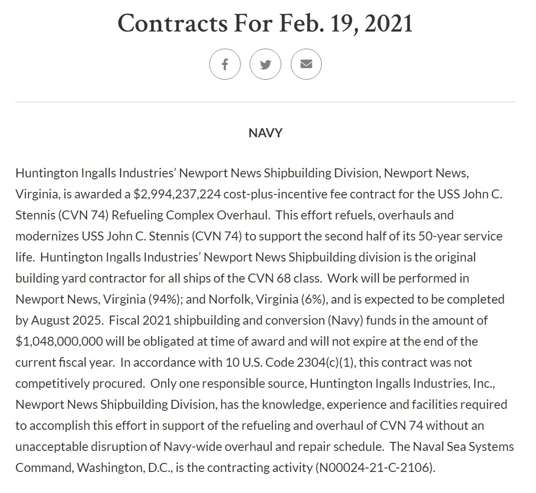 Атомный авианосец "Джон К.Стеннис" (тип "Нимиц") отправился на длительный капитальный ремонт.