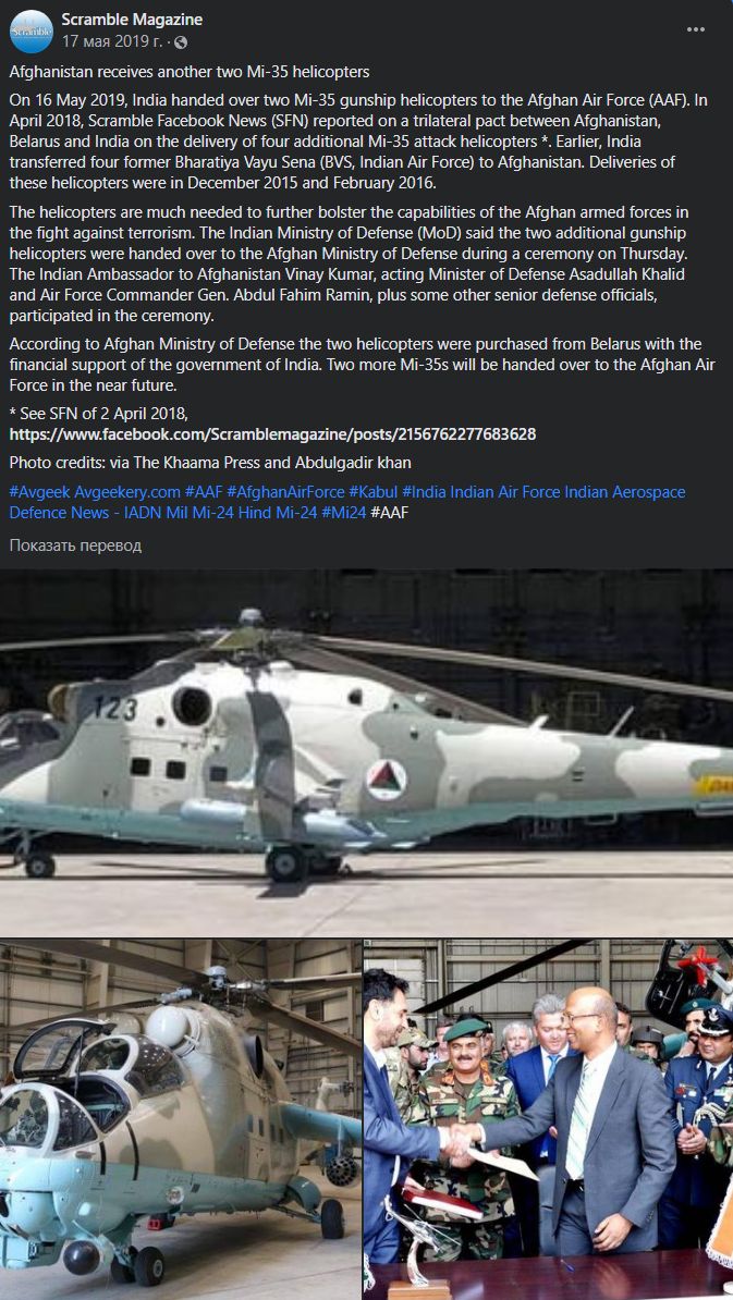 Машина была приобретена в Белоруссии, модернизирована в Индии и передана афганским военным в 2019-м году. Всего Афганистан получил 4 таких вертолета. Машина уже использовалась в боях во время одной из прошлых попыток талибов захватить Кундуз.