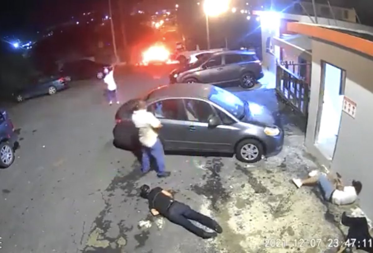 Бандитская разборка в Пуэрто-Рико, где она одна банда напала на другую, расстреляв оппонентов из машины, после чего прямо под камерой наблюдения завязалсяя стрелковый бой. Один из участниов так и не рискнул расстаться с пивом во время перестрелки.