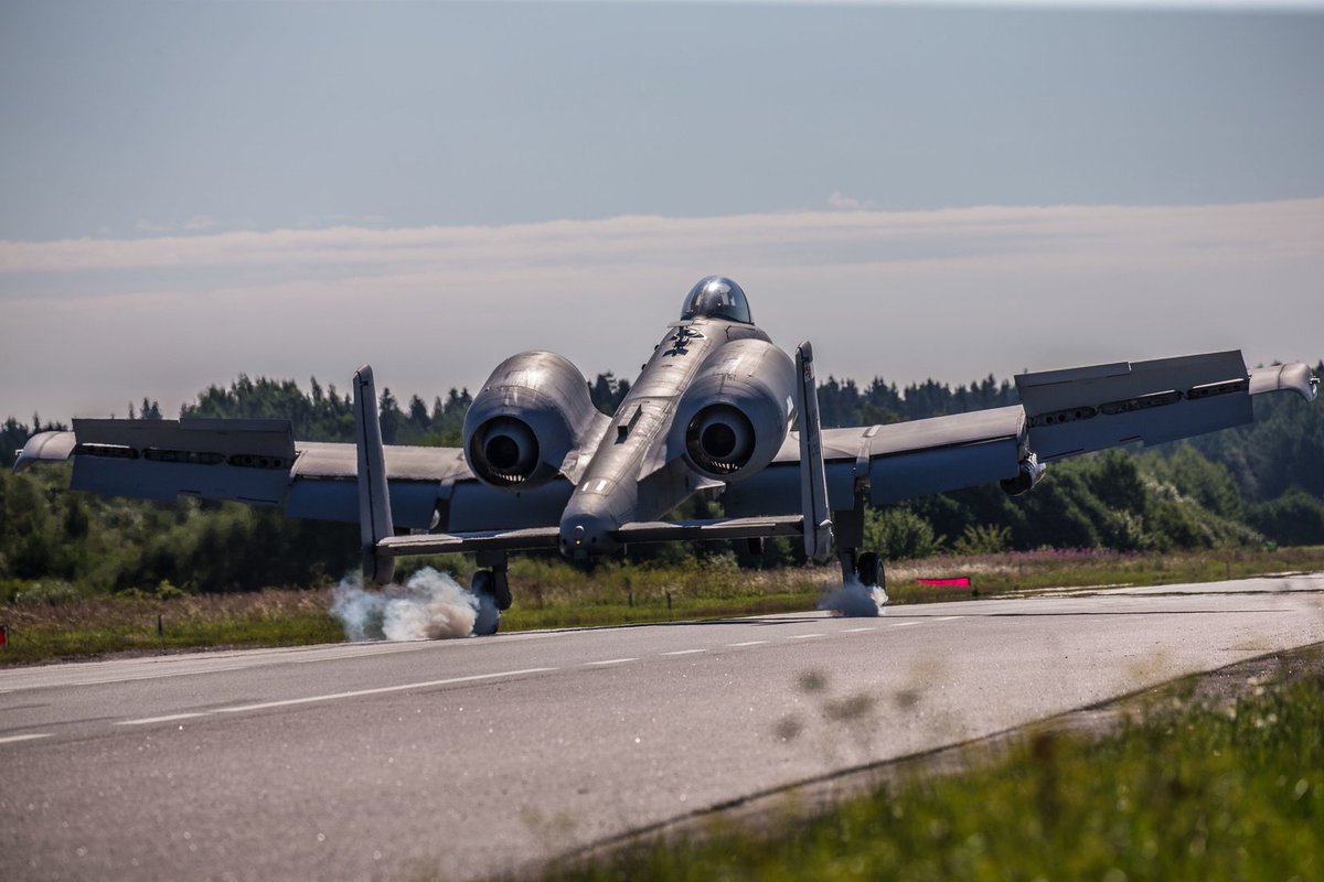 Американские штурмовики А-10 Thunderbolt отрабатывают посадку на шоссе в районе Таллинна.