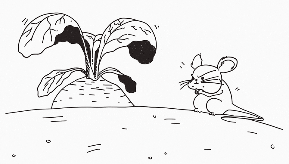 Мыша посмотрела красными глазами на плотно засевшую в сухой почве репку, на свои маленькие лапки, опять на репку. И поняла, что геморроя будет много. По смелым подсчетам, Мыша тянула бы репку 2 часа, по трусливым — 4 часа. И ещё неизвестно, какого размера репка под землёй — если большая, сроки увеличиваются.
