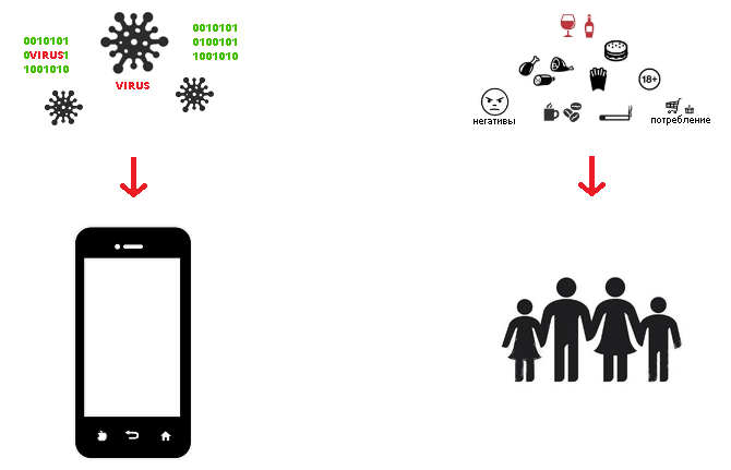 Зачем нам например нужен плохо работающий смартфон, постоянно нагревающийся, перезагружающийся, заблокированный? толку от него? не увидишь все удивительные возможности и приложения внутри. Также по ходу дела и с организмом. Образно конечно, но смысл тот же. А что если это не просто заблокированный, не работающий смартфон, а заражённый вирусами? и что если такие явления в обществе как падкость на различные удовольствия, пороки, искушения, зависимости - это не что иное как вирусы? Аналогия довольна схожа. Вирусы атакующие смартфон и постепенно превращающие его в кирпич, и вирусы атакующие человека, и при его лени, бездействии, нежелании напрягаться и развиваться, превращающие его в обезьяну.